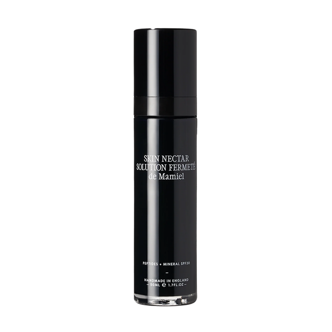 De Mamiel Skin Nectar SPF30 antaa iholle kevyen sävyn joka heleyttää ihoa ja tekee siitä tasaisen. Sinkki- ja titaanioksidit toimivat tehokkaina fysikaalisina UV-filttereinä. Voide ravitsee ihoa ja auttaa ihoa ylläpitämään sen omia kosteusvarastoja, jolloin iho pysyy täyteläisenä ja pehmeänä. Omega 6 -rasvahapot vahvistavat ihon omaa suojavaippaa. Rakkoköynnösuute rauhoittaa ihoa ja vähentää punoitusta ja ihoärsytyksiä. Peptidit kiinteyttävät ihoa ja tekevät siitä täyteläisen.